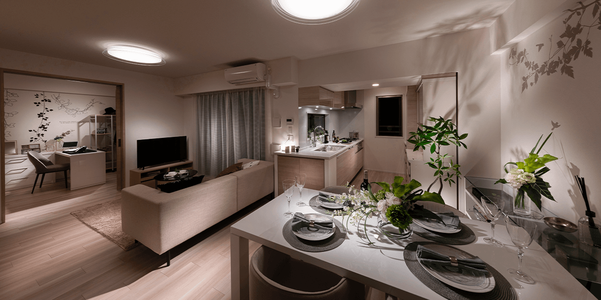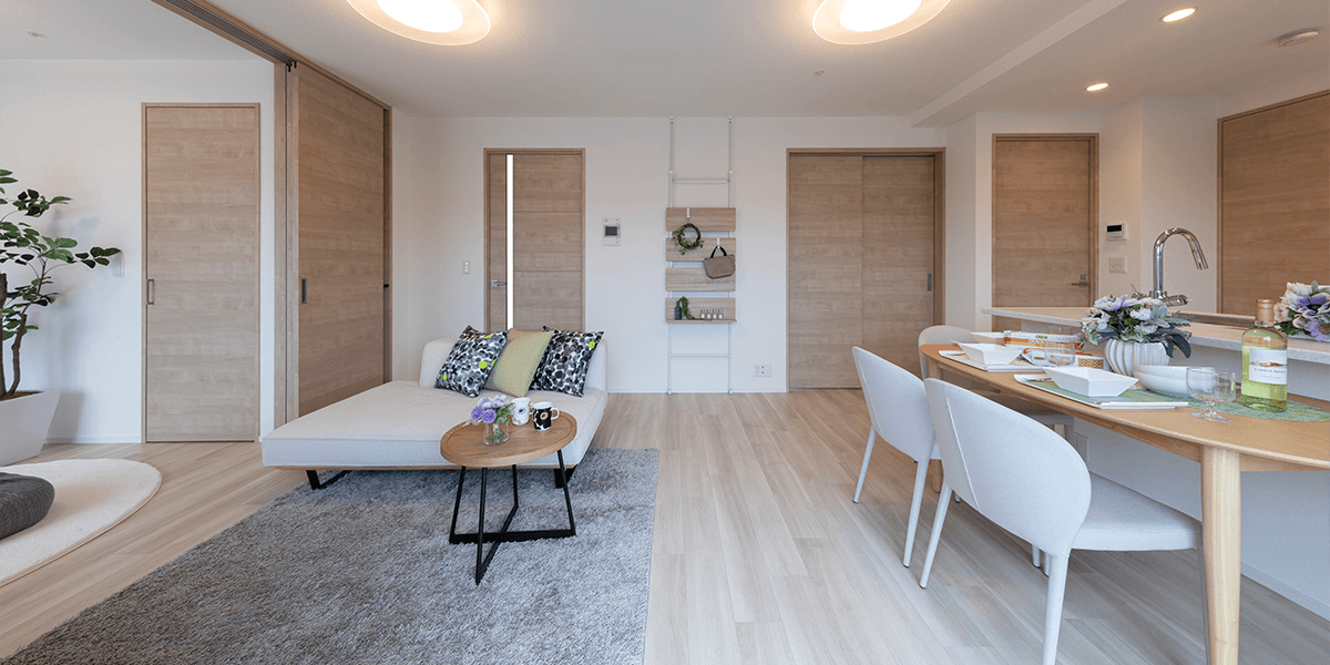 ※掲載の写真は、モデルルーム(Aタイプ2021年4月・Cタイプ2021年6月・Eタイプ2021年6月・Hタイプ2021年3月)に撮影したもので、エアコン・造作家具・照明・装飾用小物等オプション(有償)も含まれております。また、家具・調度品等は販売価格に含まれておりません。